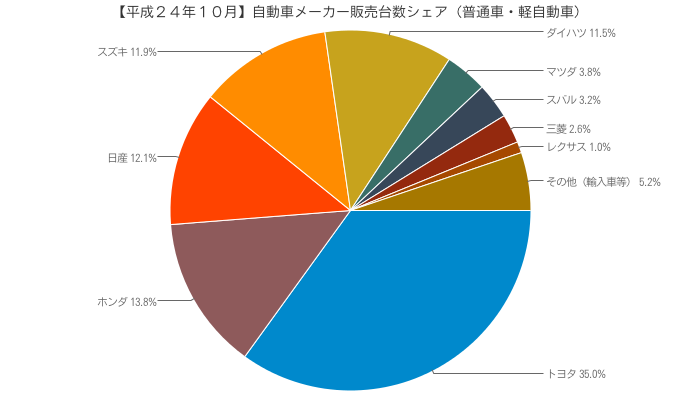 【平成24年10月】自動車メーカー国内新車販売台数シェア