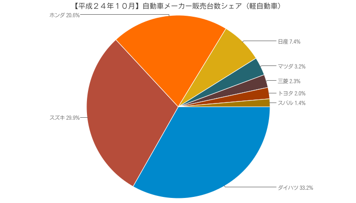 【平成24年10月】自動車メーカー販売台数シェア(軽自動車)