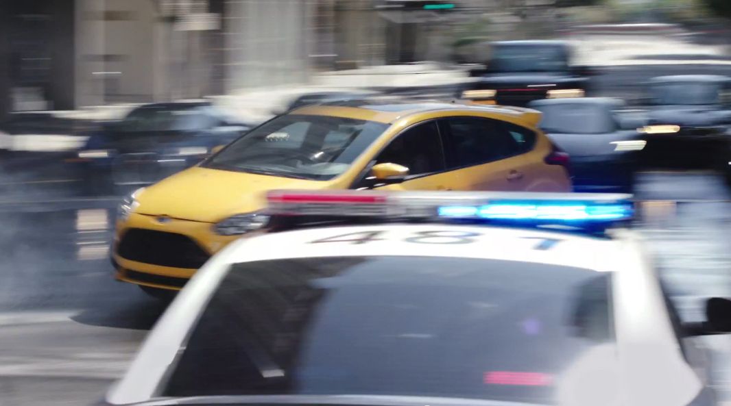 沈黙を破ったのは黄色のフォード「フォーカス」。車列の間にド派手なスピンターンで割り込み警察車両を挑発して両者の追いかけっこが始まります。