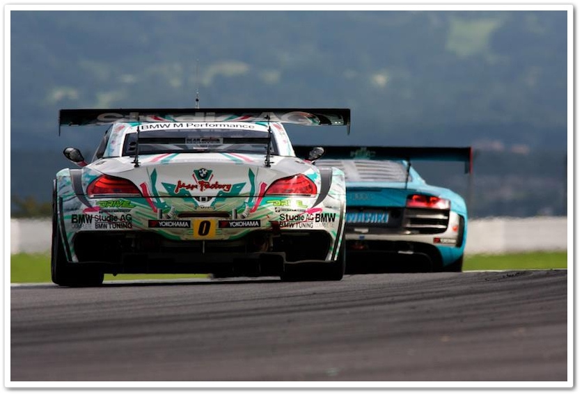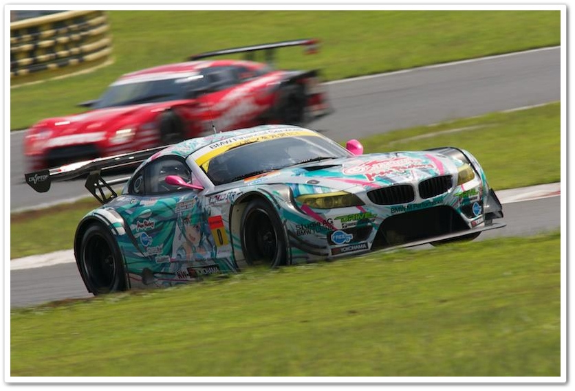ボディ全体にアニメキャラなどのペイントやカッティングシートなどを貼り付けるいわゆる『痛車』。それをレーシングカーに、しかもBMWのG4に施してしまったから目立ちまくりです。